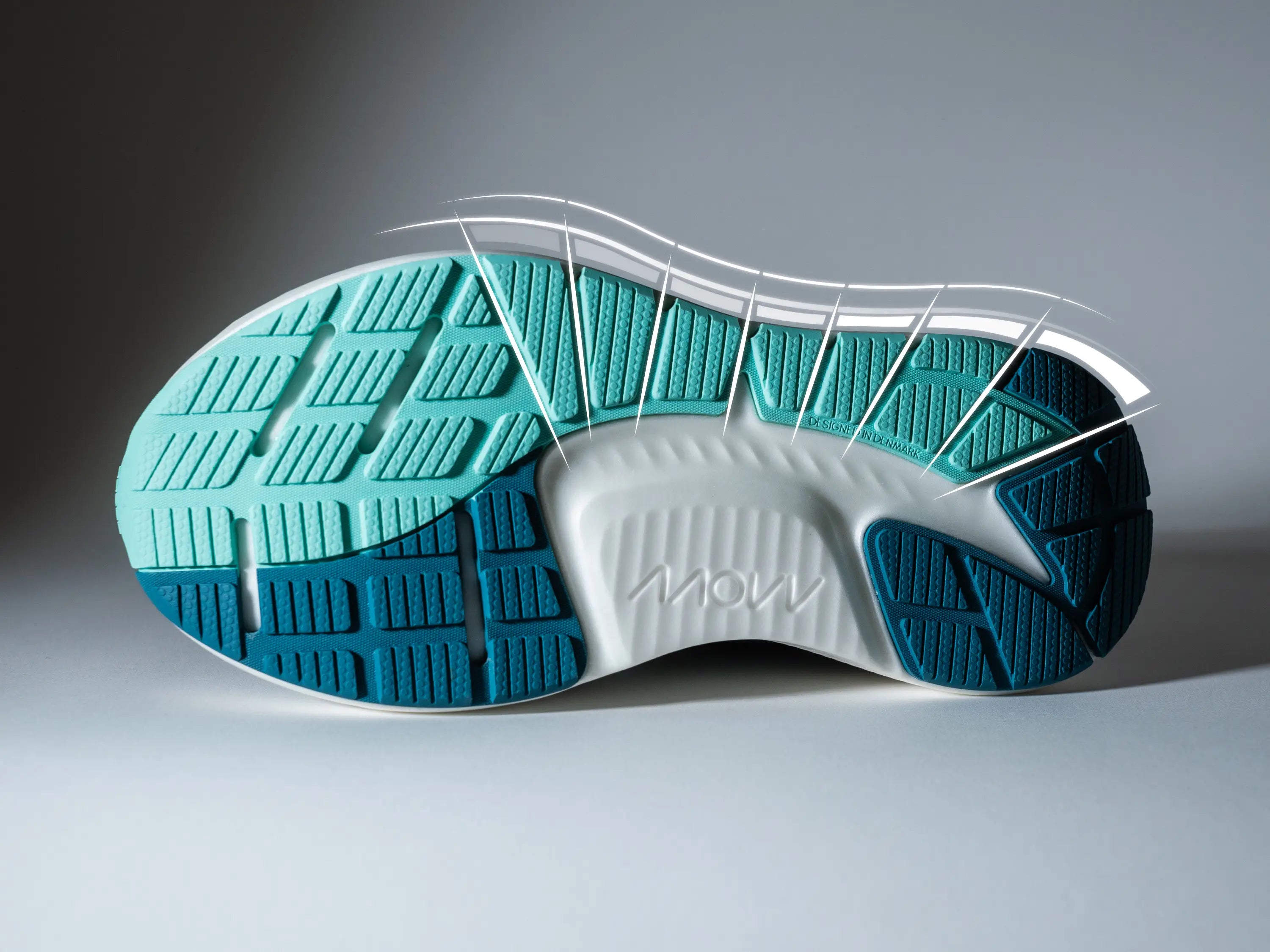 Vores sko er bygget med en 'one of a kind' forfod helt unik for MOVV. Det giver dine tæer mulighed for at sprede sig til en naturlig stilling for at få kraften til at skubbe af. Almindelige sko klemmer ofte din forfod i en nedadgående kurve.